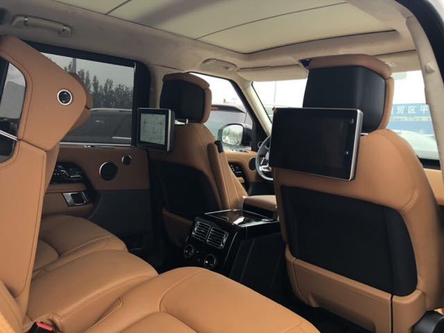 19款路虎创世加长黑曜版,中控台高档木料搭配,卫星导航系统,上下两块DVD超大显示屏;方向盘上分布着快捷按键,与老款相比方向盘上的按键也改成了触控的形式、使驾驶者更舒适的操控,充斥着满满的科技感、路虎揽胜 (配置|询价)行政中控台更宽;更精致,按键少了一半,大多数基本控制功能在咫尺。由精美真皮和甄选实木装饰的表面干净优雅,散发出安详平静的感觉。新款路虎揽胜行政内饰一如既往的精致内敛,如同绅士。