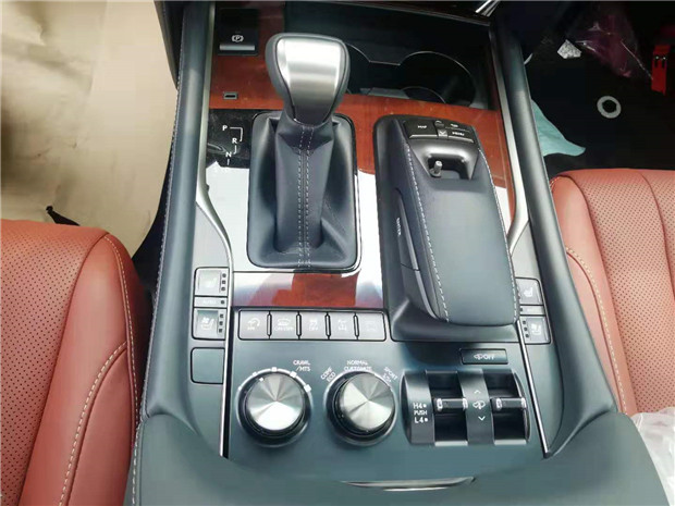 雷克萨斯LX570中控台及仪表台上方的材质为软性真皮包裹,材质优越,按键及按钮手感好。仪表盘和音响系统控制面板遵循LEXUS雷克萨斯未来设计风格,呈现简洁与易操作的特点。新款雷克萨斯LX570在方向盘、中控台下方增加了仿桃木作为修饰,做工十分精细,而出风口外包围面板、杯座盖、USB盒盖、后座加热控制面板及中控面板上部也均改为高亮度银材质,金属饰板与桃木装饰的搭配很自。