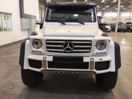 奔驰G500 (配置|询价)4*4依然是非常经典的方盒子造型,进气格栅采用了三幅式设计,并换装了全新的LED大灯。车身尺寸有所增大,这对于提升后排乘客舒适性是有帮助的 ,前悬架或将改为独立悬架。同时增加“G”越野模式,该模式下,减震器可以根据自动路况调整阻尼,以降低越野难度。