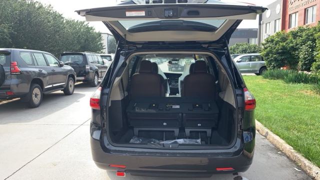 20款丰田塞纳在储物方面也有很高的利用率。遍布全车的储物空间杯架使得车内的每个乘客都能得到照顾。这点也体现出丰田MPV车型的设计功力,单纯的空间大不代表什么,提高利用率灵活多变很重要。后排座椅采用电动放倒设计,控制键设计在尾门上操作便利,而且内装材质很有细腻,双色座椅很配色很棒,就是需要多清理。处处都体现出小细节的创新。