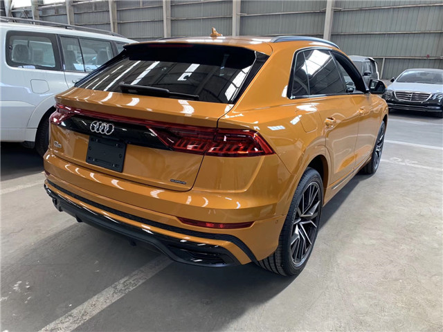 Q8尾部采用了极具辨识度的贯穿式OLED尾灯组,中央的黑色高亮面板镶嵌了品logo,杀气十足。保险杆部位和底部护板采用了复杂的线条勾勒,具有设计感,层次鲜明、丰富。另外,Q8采用了双边共双出的排气布局。内饰方面,Q8较少用到物理按键,起自仪表的空调出风口一直向外延伸至车门,一气呵成。仪表盘为12.3英寸液晶显示屏,中控台上下两块屏幕(上方10.1英寸,下方为8.6英寸)加入触摸功能,提升科技感。运动方向盘多处加入镀铬元素。运动座椅增强了包裹性,宽大的后排空间采用三座设计。