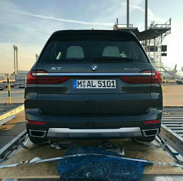 宝马X7的尾部后备箱采用上下对开的开门方式,贯穿式的尾灯配合一整根镀铬装饰条,符合当下的潮流,车尾部的线条设计也非常丰富,排气采用了双边单出的设计,处处都彰显着大气两个字。全新宝马X7车身尺寸为:长:宽:高:5151:2000:1805 轴距:3105轮胎方面:全新宝马X7标配20英寸轮毂,21以及22英寸轮毂属于选配件。22寸轮毂规格为:275/40 R22。