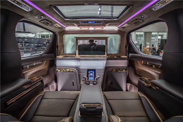 丰田埃尔法 (配置|询价)蒙娜丽莎是一款以埃尔法为基础的改装顶 级四座商务车,它的设计源于丰田公司御用改装公司,我公司每年定期参加车展进行学习,并且不断地提升及自我调整优化、从内而外不断提升产品品质,论专业性已领 先同行,并且我公司产品配备公告、无需拆装落户,方便您日后检车。如您有需要调整的意向可以优化调整、专业铸就经典。