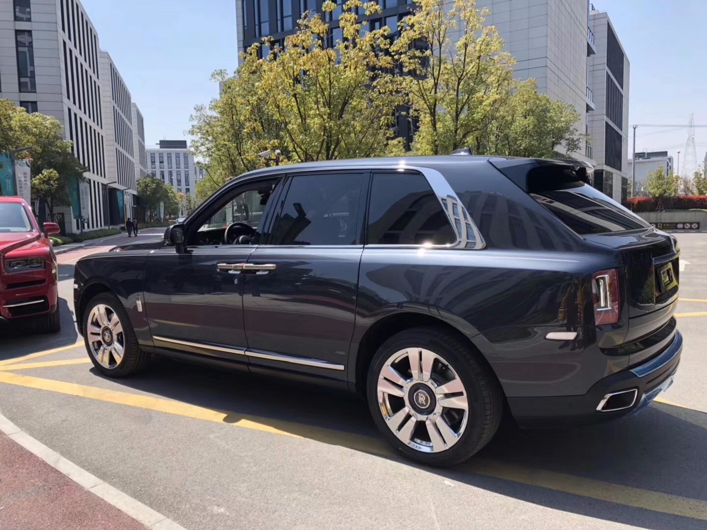 劳斯莱斯库里南 (配置|询价)现车到店。该车与新一代幻影 (配置|询价)基于相同架构打造。造型方面,帕特农神庙式进气格栅更加修长,搭配矩形全LED前大灯组和较高的车头设计,在劳斯莱斯特有的奢华气质上,SUV的身姿令其更添一份威武感。前包围采用了富有层次感的设计,配合恰当的装饰点缀,既美观又避免了古板的感觉。