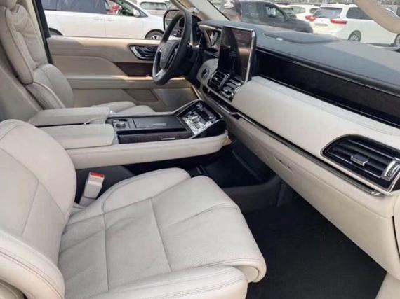 林肯领航员新车及其奢华,多功能方向盘,全部真皮包裹座椅,内饰采用桃木搭配设计,高贵典雅,加长车身除了增加内部空间外,还给人营造一种尊贵典雅的感官。在中排座椅中间的储物箱,大得可以放十几瓶矿泉水,而中排座椅也因此变成了独立式,感觉上跟同家里的客厅一般;而第三排的宽敞出人意料,即便是成年人坐进去也不会觉得局促。