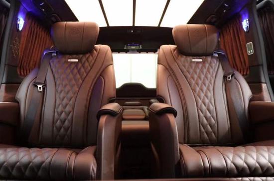 奔驰v260L高顶带隔断,对面的吧台里藏有两个折叠座椅,可以根据乘客人数做出相应调整,隐藏起来是吧台,打开之后还可以坐两个人,不浪费车内一丝空间,这就是奔驰V260L高顶版商务车,奔驰v260L高顶带隔断,隔断处为32寸可升降液晶电视,随时播放商业文件与娱乐节目,搭配BOSE高品质音响系统,随时给与乘客最好的视听盛宴,中间吧台处安置了一部咖啡机,让旅途随时喝上热咖啡,丰富配置还你最高驾乘体验