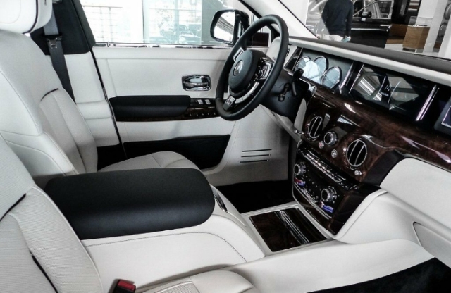 劳斯莱斯幻影车内采用的皮革隐隐地散发着牛的气味,在幻影车上,公众还能看到最高水准的手艺和最优质的材料。坐在左后的乘客欠身去取放在副驾驶的某种物品,为了打造世界上最安静的汽车,劳斯莱斯汽车倾尽全力:包括6毫米双涂层隔音材料、使用有史以来最大的铸铝部件确保隔音效果及使用高效吸音材料。后排配备的电动折叠板和后排影院系统被巧妙的隐藏在前排座椅的椅背后,只需轻触按钮,便可以自如收放桌板和影院系统,带来完美的剧院体验。后排中央固定扶手做了重点优化,其中国可容纳带有威士忌酒具的酒柜、香槟酒具和冷藏箱,方便乘客畅快交谈。后排乘客舱增加了 250 mm 腿部空间,从而不仅提供了宽敞的休闲空间,更增加了实现客户定制的可能性。这是一个能让您感到备受尊宠的私人空间,既是极佳的工作场所,亦适合在约会间隙放松身心。