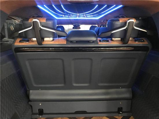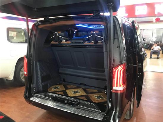 加装配置:V-Class (配置|询价) LED大灯、多功能行李架、全车镀铬套件、后视镜转向灯、马可波罗侧窗、桃木装饰件、全车内饰镀铬装饰套件、全车内饰真皮包覆、二级星空顶及氛围灯、奔驰原厂分体休息脚踏、四门带灯迎宾踏板、东丽奥司维鳄鱼纹大台、东丽奥司维黑色行云流水顶棚、土耳其真牛毛地毯、行政会议桌、顶部阅读灯、12.1英寸后排头枕娱乐屏、前排扶手加12L温控冰箱、电动航空座椅带奔驰原厂开关、第三排180°电动沙发床、后排折叠小桌板、倒车雷达、倒车影像