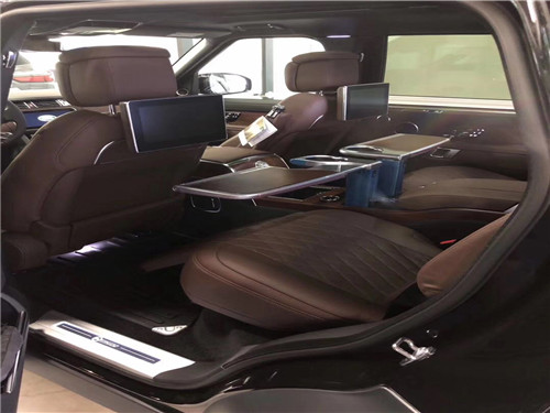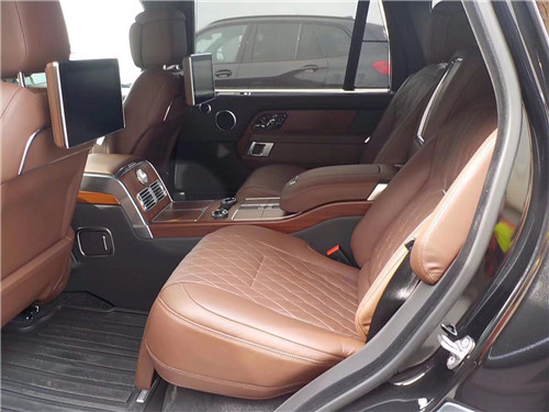 路虎5.0巅峰创世加长SV内饰特点:限量版整个内饰无论触感还是视觉效果都堪称一流,充分的向你诠释“豪华”的定义。均采用精心设计及精湛工艺,并选用最为顶级的皮革及材质,搭配以精致独特的外观细节,以期满足消费者的诸多需求。方向盘采用四幅式设计,双喇叭按钮设计比较靠内侧,当然多功能方向盘上集合了很多功能,不仅带有音响音量调节、定速巡航控制,还配备车载电话的控制。