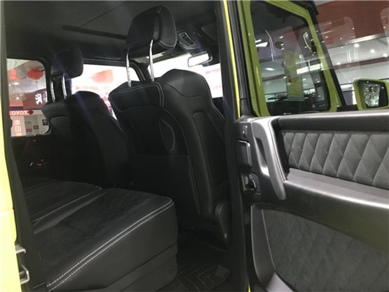 奔驰G500 4*4 配置:V8双涡轮增压4.0升发动机,顶配,AMG的M178,悬架升高离地450mm,新一代G级越野车的发动机和底盘还采用了牵引能力达3.5吨的设计,因此还能够牵引船只、货车或宿营车,车宽2100mm,车高2250mm,该车既可以将MT胎装在18寸两片式带锁轮圈上使用,还可以在城市道路上换上325 55/R22的铝圈。碳纤维内饰,前排座椅加热通风,碳纤维轮眉,车顶碳纤维扰流板,带LED上雾灯,门式车桥传动系统,黑色车顶,AMG包围,不锈钢双车底保护,可调悬挂,22轮。