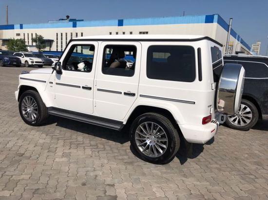 19款奔驰G500标配:4.0T V8 422匹马力 9速变速箱 20轮 几何多光束LED大灯 NAPPA真皮座椅 真皮仪表台 64色氛围灯 胡桃木内饰 滑动天窗 NAPPA真皮方向盘 AMG内饰/外观 运动排气 支持carplay/Android 自动双区空调 自动泊车辅助 柏林之声环绕音响 五种驾驶模式选择 主副驾驶电动调节带记忆功能 前座椅通风加热 后座椅加热 定速巡航 comand导航 100L油箱 液晶仪表盘 多轮廓前座椅 8个气囊(2个前部、2个前侧、2个膝部、2个后部)自适应刹车带AUTOHOLD 感应雨刷 倒影。