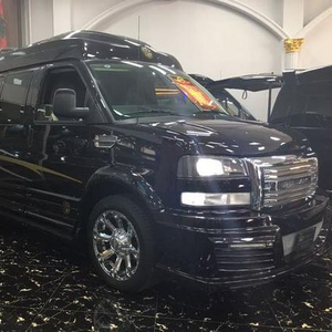 GMC商务车中网使用了三层式的金属塑网的样式设计,外面又有一圈宽厚的金属镀铬条来包裹,视觉效果上就非常的霸气。大灯使用的是LED光源,低端车型安装的则是氙气大灯,这款车灯最出彩的地方是它那半包围式的LED灯带设计,亮起来效果很不错。