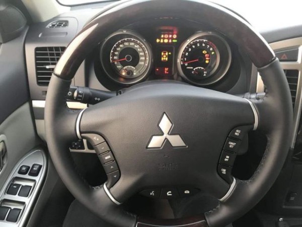 19款三菱帕杰罗V97双差版,深浅搭配的内饰营造出的轻松舒适氛围,黑色四幅方向盘还依旧透着三菱独特的运动气息,与前面两位对手一样,丰富的多功能按钮也是一应俱全,大面积银色的装饰面板、高亮度银色外环仪表盘、上深下浅双色调处理的中控,局部使用的深色桃木材质。