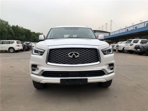 平行进口英菲尼迪QX80基本参数:5.6L自然吸气,V型8缸直喷汽油发动机,最大406马力(298KW)最大扭矩560N.M,发动机特有技术VVEL/VCTCS,7速手自一体(AT)变速箱,前置全时四驱,多片离合器,双叉臂独立式前悬挂带横向稳定杆,双叉臂式独立后悬架,电动助力,非承载式车身,长宽高5340*2030*1925,轴距3075mm,前轮距1715mm,后轮距1725mm,最小离地间隙234mm,整备质量2734kg,钢铝混合车身,油箱容积100L,四轮通风盘,轮胎规格275/50R22,全尺寸备胎,ABS防抱死,制动力分配(EBD/CBC),刹车辅助(EBA/BAS/BA),牵引力控制(ASR/TCS/TRC等),车身稳定控制(ESC/ESP/DSC等),上坡辅助,陡坡缓降。