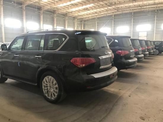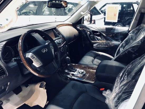 19款英菲尼迪QX80(改款) 二排中央扶手 多种驾驶模式 电动多功能桃木方向盘 一键启动 无钥匙进入 nappa真皮座椅(内饰) 主驾座椅记忆 主副8项电动座椅 腰部支撑 触摸大屏 自动空调 钟表 座椅加热 天窗 自动防炫目后视镜 桃木内饰 电尾门 冰箱 后排自动空调 后娱 第三排电动座椅 内拖车钩 前后电眼8个 led日行灯 自动调节大灯led 22轮 环影 胎压 8气囊 定速巡航 行李架 方向盘电动调节 bose音响