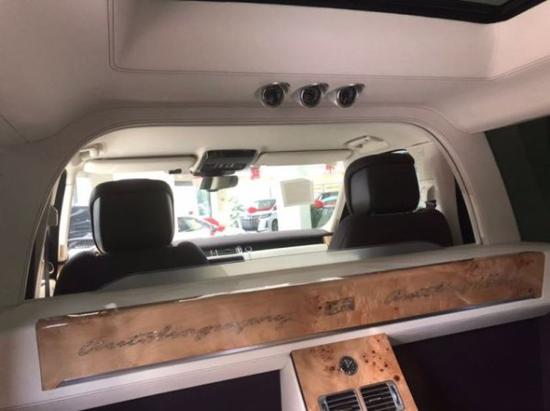 19款路虎揽胜皇家一号配备双重电控升降隔屏(木质电视升降隔屏+电控雾化玻璃升降隔屏),为乘坐者营造出一个顶级雅致的私人空间!32寸高清液晶电视搭配DVD影音系统(带HDMI及蓝牙接入)、2个10英寸小HD电视、殿堂级高保真环绕音响,铺垫了一场影音视频环绕的氛围之行。