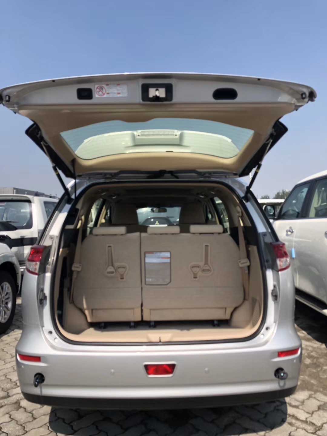 2019款大霸王高配版 真皮桃木方向盘,丝绒座椅主驾驶电动,2气囊,前2后4电眼,17铝合金轮,电动侧门,电动尾门,双天窗,7座,中排腿托,座椅四项滑动,AFS随向转向大灯,VSC,胎压检测,吸顶DVD,桃木内饰,定速巡航,CD,一键启动,智能卡,双区自动空调,氙气大灯,大灯清洗,雾灯等