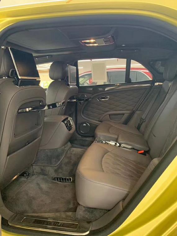 [配置]:刺绣宾利徽章头枕,极致优选包(21轮,黑色小飞人,宝石加油盖,遥控车门开启装置,泊车钥匙,2把雨伞),舒适包(座椅通风按摩),娱乐包带地图(宾利影院,Naim宾利高级音响),穆勒LED迎宾灯,前舱大型玻璃天窗,后排隐私玻璃,碳纤维车门内侧衬板,前后长威尔顿地毯,单色4辐可加热真皮方向盘,钻孔运动踏板,后侧化妆镜饰面环绕,黑色钢琴漆实木饰板,后排小冰箱带磨砂玻璃杯及定制水晶香槟杯,带饰面后排小桌板, ACC巡航,内饰情绪灯,宾利GPS追踪系统,侧边角落摄像头,数字电视及数字收音机,六碟DVD播放器,备胎