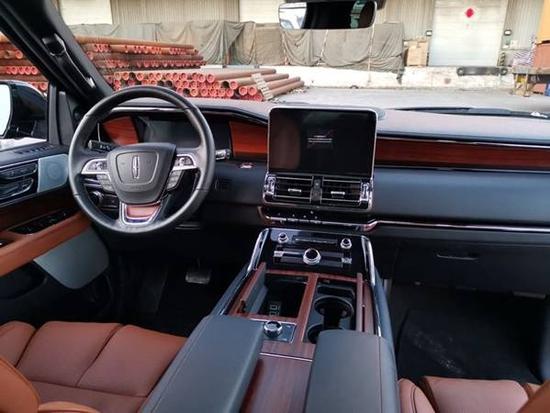 19款林肯领航员3.5TT 7座精雕细琢的内饰, 结合了美国胡桃木和高级真皮材料、丝光镍饰件与白色发光二极管等组合一起,营造出一个豪华、浪漫而又极具现代感的车内环境。方向盘和轿车一样的轻盈,周身散发出来的尊贵气息,让人肃然起敬。