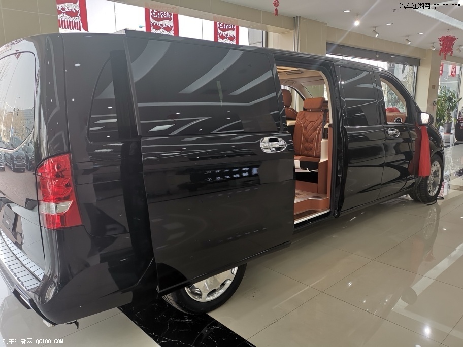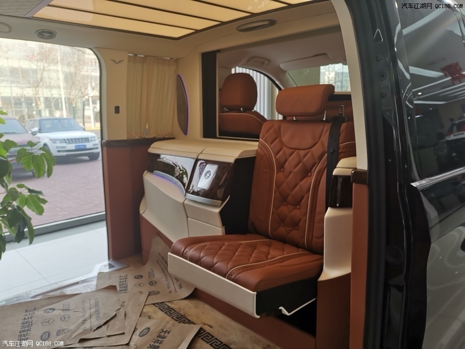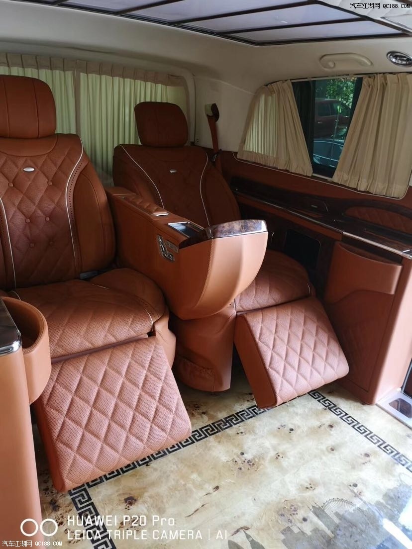 5152*1905*1990,配备2.0T 208马力 L4发动机,功率达(千瓦(马力)/转速)155KW211PS/5500,保持商务稳重的同时动力也足。全新进口奔驰Metris改装后座三连排电动沙发座椅,向后拓展可一键平躺变身奢华大床,商务出行可作为休憩佳所,合家出游首选。