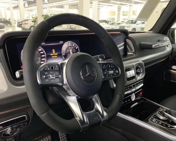 2019款梅赛德斯-奔驰G63的内饰非常现代。中控台出风口与扬声器指示灯形状互补。两个12.3英寸的显示屏升华了内饰,并提供三个选项:经典、运动和增量。舒适性、技术配置也令人眼花缭乱,包括:驾驶员座椅记忆、前后座椅加热、多角度调节、座椅按摩(主动多功能座椅套件)、AMG多功能方向盘(可控自适应巡航、语音控制、多媒体控制等)。