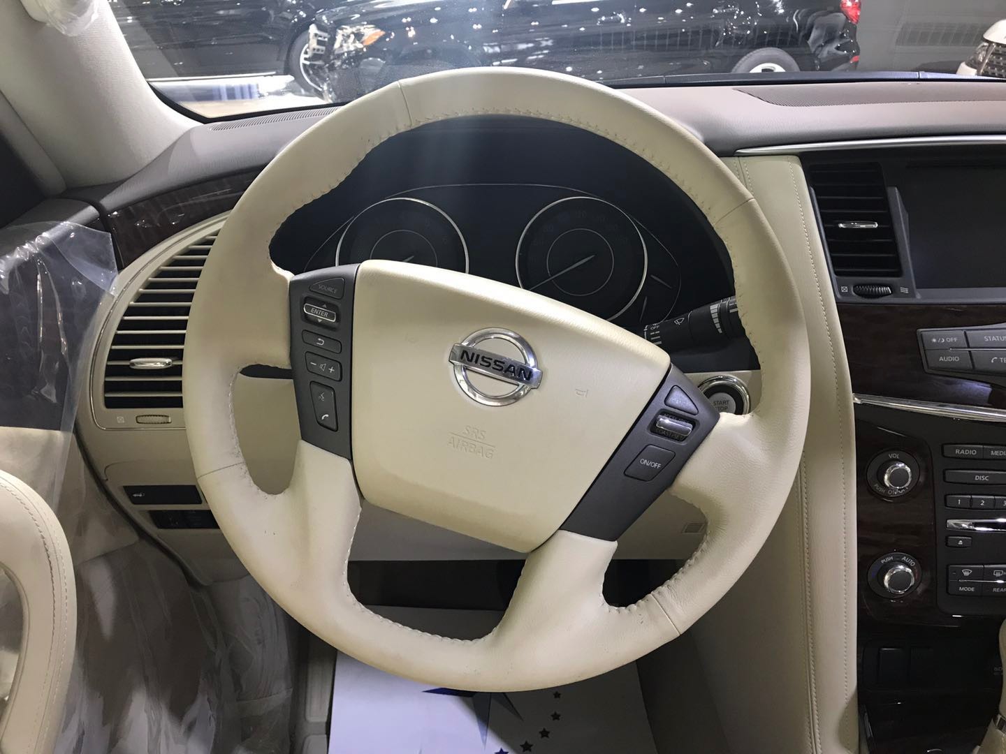 19款进口日产途乐4.0内饰整体风格豪华真皮座椅、DVD娱乐、上下坡以及胎压监测等装备也都悉数出现。新款日产途乐内饰材质也更加的考究使用了皮革,铝以及木纹样条作为点缀。采用了豪华轿车惯用的四幅风向盘设计,粗细比较合手再加上真皮加实木的用料,手握感觉极佳。另外方向盘功能强大,集成了音响、空调控制及蓝牙车载免提系统,使驾驶者在行车中更为安全,做到手不离方向盘。同时方向盘加热功能,令驾驶者双手在寒冷的冬季也能得到最佳的呵护。