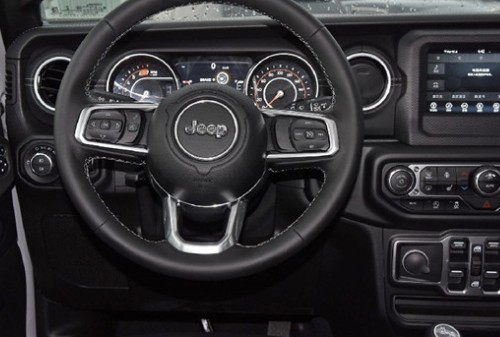新牧马人外观变化并不大,内饰却进行了全面“精装修”,瞧,牧马人的多功能方向盘以及仪表盘等处均重新设计。新车中控台更加时尚,空调出风口的位置被设置在中控显示屏的两侧,其下方是空调控制区,车窗控制键在中控台的中间位置。不仅如此,在新牧马人上,还增加了全新的液晶显示屏,功能上更接“地气”。