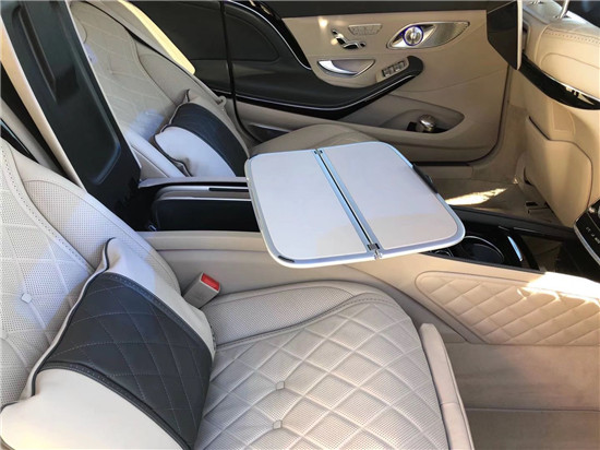 迈巴赫S560凭借行政座椅,前排乘客侧的后排乘客即使在长途行车中也能够完全放松。仅需按下一个按钮,便可将座椅设置到舒适的角度,最大倾斜角度为 43.5 度。一个附加的伸出式腿部支撑进一步增强了舒适性。配备电动可伸出式脚踏板时,能够创造出一个适合睡眠的舒适座椅角度。当座椅靠背倾斜度较大时,可以通过一个气垫增强乘客的安全保护效果。发生正面碰撞危险时,它可在座垫下展开,从而防止乘客从安全带下方滑出(潜滑)。