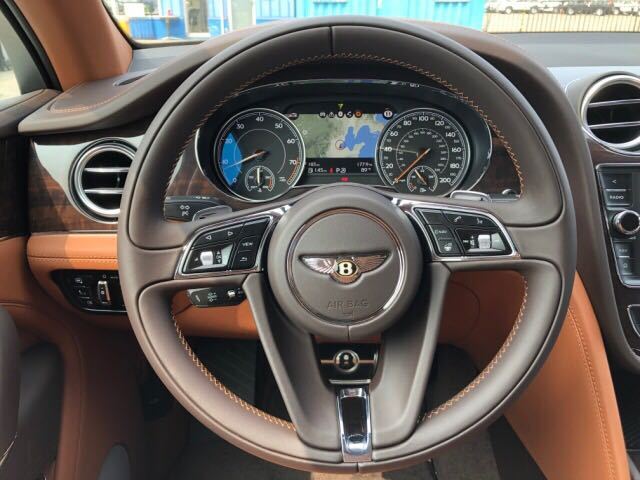 19款宾利添越(V8)真皮包裹的方向盘手感无与伦比,真正了解添越之后会发现,它更适合驾驶,面对着方向盘的这个位置才是最被重视的,前排空间宽裕,座椅无论是包裹性还是舒适性都符合自身价值与定位,并且拥有诸多调节功能,其舒适感就像您看见的一样完美,坐进去整个人都散发着尊贵的光芒。