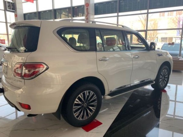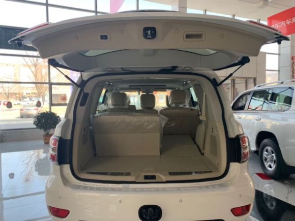 :19款日产尼桑途乐Y62中东版采用全新的家族式设计语言,对前脸、尾部等细节做出了调整。连接两侧头灯的大面积的进气格栅,内部增添了三根横向镀铬饰条,使得车头显得更加宽大有力,近乎菱形的前大灯与镀铬饰条完美的融合在一起,契合度非常高。前大灯不仅内部结构发生了改变,光源也由老款的氙气升级为LED大灯。