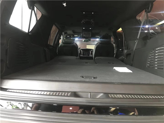 细节方面:凯迪拉克总统一号的前大灯和透明LED尾灯,大面积方格镀铬隔栅,都体现了凯迪拉克的家族设计。2017款凯迪拉克凯雷德总统一号内部为六座设计,前排为电动折叠座椅,座椅收起跟中间多功能实木吧台融为一体,形成更大吧台。后排为2个独立的电动按摩座椅带8向自动调节功能。