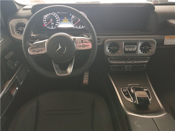 换代的最大最大亮点之一,给人耳目一新的感觉,双12.3英寸液晶通体屏幕外加与奔驰E (配置|询价) COUPE相同的空调出风口设计,让大G的内饰更加豪华,科技感也有所增强。沿用多年的四辐式方向盘也改为三辐式设计,三点以及九点处的多功能按键也与S级车型相同,两侧黑色触控按键可以控制仪表盘信息,其中行车电脑和右侧模拟仪表都可以进行切换,可显示油耗、续航里程、车辆状态等信息。在内饰用料方面,奔驰全新G级内部均采用了真皮材质包裹,手感极佳。在副驾驶台上还增加了碳纤维扶手,保护了车内人员在行车时的安全性。