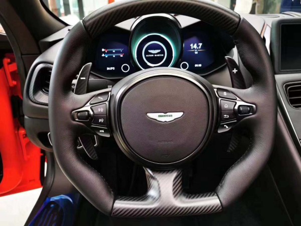 在内饰配置方面,不同于阿斯顿马丁DB11系列车型,新车在仪表盘设计上有些类似于奔驰车型所使用的COMAND系统风格,采用了触摸平板以及旋转控制器相结合的方式,此外新车的环抱式前部座椅和运动型方向盘设计也让人眼前一亮。
