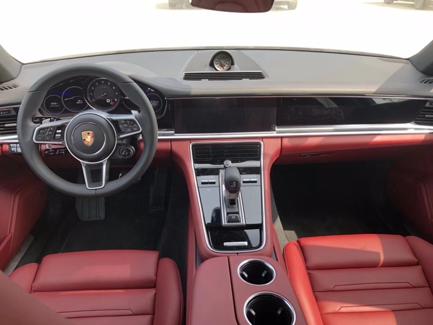 19款保时捷帕纳梅拉4S式仪表盘,具有液晶显示屏的行车电脑显示功能,超大液晶显示屏配有倒车雷达模拟图像。还有可以在每个弹簧中按需提供额外充气量的气动悬挂系统,可自动升起且角度可调的后扰流板,确保了主动空气动力学性能。