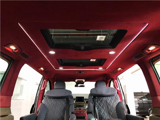 2019款奔驰迈巴赫VS680顶部分采用成本相当高的Alcantara包覆,并且保留了可开启的天窗和后部的迈巴赫九宫格顶灯,如果说这种豪华的氛围只是感性上的认知,那用理性的决定选择迈巴赫V级就体现在它的个性化功能上。舒适车厢 - 身心享受,尊贵独有。