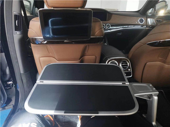 迈巴赫S650凭借行政座椅,前排乘客侧的后排乘客即使在长途行车中也能够完全放松。仅需按下一个按钮,便可将座椅设置到舒适的角度,最大倾斜角度为 43.5 度。一个附加的伸出式腿部支撑进一步增强了舒适性。配备电动可伸出式脚踏板时,能够创造出一个适合睡眠的舒适座椅角度。当座椅靠背倾斜度较大时,可以通过一个气垫增强乘客的安全保护效果。发生正面碰撞危险时,它可在座垫下展开,从而防止乘客从安全带下方滑出(潜滑)。