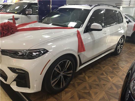 2019款美规宝马X7参数配置:发动机:3.0T 340马力 L6,变速箱:8挡手自一体,长*宽*高(mm):5163*2000*1805,车身结构:5门7座SUV,最高车速(km/h):245,官方0-100km/h加速(s):6.1,轴距(mm):3105,整备质量(kg):2436,最大载重质量(kg):545,最大拖挂重量(kg):3399,车身材质:钢铝混合,油箱容积(L):83,行李厢容积(L):1376,最大行李箱容积(L):2560,进气形式:双涡轮增压,气缸排列形式:L,气缸数(个):6,每缸气门数(个):4,最大马力(ps):340,最大功率(kw):250,最大功率转速(rpm):5500-6500,最大扭矩(N·m):447,最大扭矩转速(rpm):1500-5200,驱动方式:前置四驱,四驱形式:适时四驱,轮胎规格:275/40R22。