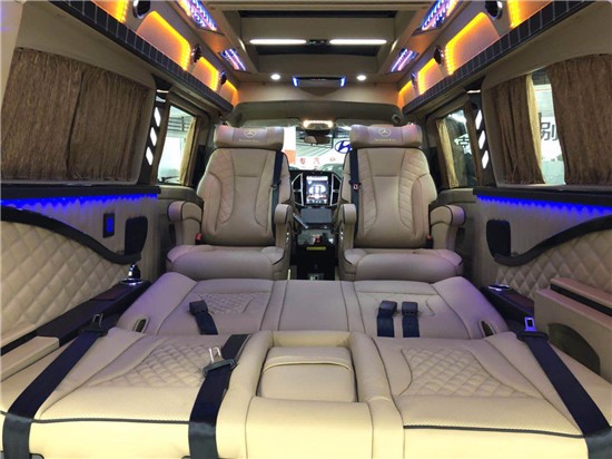 进入奔驰威霆7座改装后舱,立刻就会被它的豪华绚丽而征服,整车环保真皮包裹,游艇级柚木地板铺设,豪华感无处不在。全部采用真皮制作,豪华木饰装点,带有按摩加热通风功能。后舱前为两个独立航空座椅,第二排座椅安装进口首席航空座椅,加热通风按摩功能齐全,最大限度的减缓您的乘车疲惫。八向电动调节:电动头枕,电动腿托,前后电动调节,电动靠背调节。第三排为一组沙发座椅(可电动展平,形成一张舒适的沙发床)。