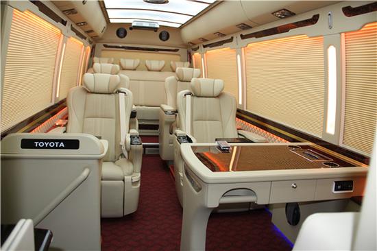 丰田考斯特高级版受人喜欢的原因是因为价格的优势,而豪华版的则是因为设计上更加端庄大气,除了高级版和豪华版,丰田考斯特改装商务车在设计上还有特别行政版的香槟金以及至尊版的纯白考斯特在座椅的设计上丰田考斯特改装的项目有真皮座椅,织物座椅以及可旋转的航空首长席位或者是原装进口的埃尔法 (配置|询价)座椅,每一种座椅的设计都可以根据本我们的需要设计。