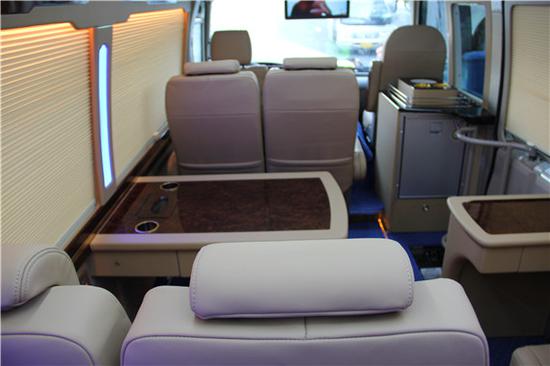 丰田考斯特13座14座改装商务车内饰座椅的布局较为宽敞,在长达7米的丰田考斯特改装商务车内,这样的座椅布局带给我们更多的活动空间,我们可以尽情的释放我们的双腿,不会因为空间的限制感到拘束,丰田考斯特13座14座在内饰的设计上还有一些实用性较强的设计,舒适的办公桌设计以及贴心的车载冰箱的设计,丰田考斯特改装商务车13座14座在设计的每一个项目上都充分展示了自己的独特,隔断的设计也增加了空间的独立感,让丰田考斯特改装商务车在内饰的设计也显示出更加温馨。