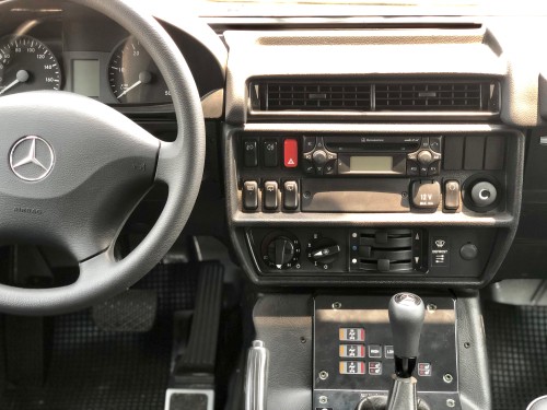 在内饰方面,G300依然将实用的理念延续到底,整个内饰设计朴实,各个功能区域清晰明了,很好的传承了G系列的经典设计。改装奔驰G300一改民用豪华、高贵的设计,而是采用将实用性进行到底的设计理念。在仪表台区域,G300采用传统机械式指针设计,可以显示速度、转速、水温与剩余油量。值得注意的是,作为一款柴油车,G300转速表最大值达到了7000rpm。方向盘采用真皮设计,没有多余的按键。可喜的是,奔驰G300配备了方向盘安全气囊,为驾驶员提供安全。