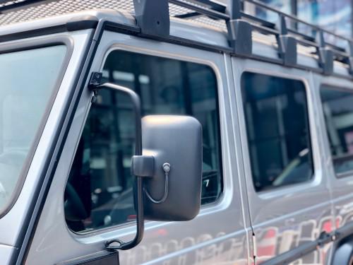 在中控部分,G300各区域功能清晰,大多数功能采用按键与旋钮控制。值得肯定的是,G300配备了CD播放器,使远行更增添一番乐趣。在CD播放机的下部,改装奔驰G300预留了一块地方,方便日后加装其他设备。比较有意思的是,G300的空调采用了旋钮+三组拨杆的设计,还特别贴心的展示了前风挡解冻的功能。改装奔驰G300配备了手动防眩目内后视镜,尽可能多的保持机械风格才是所需要的。除此之外,G300还提供了前排座椅加热,增添更多舒适性。