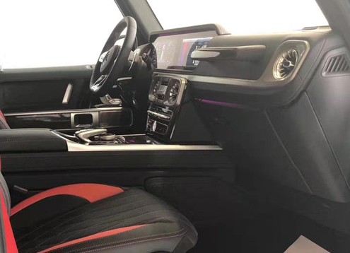 2019款全新G63内饰方面,新G63保留了新G500的整体设计,除配色差异外,新车还换装了全新造型的平底式AMG运动方向盘,其两侧配以打孔皮质包裹,下部镀铬装饰的造型也与新G 500明显不同,看上去十分战斗。此外,全液晶仪表盘+中控大屏的双12.3英寸屏幕设计在新车上也没有缺席,营造出了浓郁的科技感。新G63保留了新G500的整体设计,除配色差异外,新车还换装了全新造型的平底式AMG运动方向盘,其两侧配以打孔皮质包裹,下部镀铬装饰的造型也与新G 500明显不同,看上去十分战斗。此外,全液晶仪表盘+中控大屏的双12.3英寸屏幕设计在新车上也没有缺席,营造出了浓郁的科技感,2019款奔驰G500价格G63报价G63先型特别版多少钱。