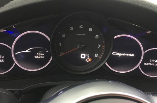 2019款保时捷卡宴3.0T的仪表盘设计依旧是保时捷经典的样式,两侧为液晶虚拟屏,中间为机械转速表,这种组合不仅带来了一定的机械感,同时还增加了内饰科技感。