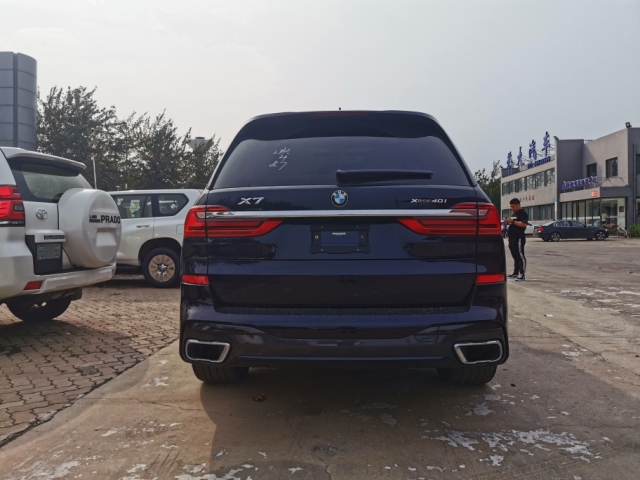 车尾上,宝马X7的设计与车头比起来要收敛很多,不过看起来比它的兄弟宝马X5横向视觉被拉宽很多,车顶后扰流板的设计运动感十足。新车尾灯的设计格外时尚,并在两端尾灯中间采用镀铬条进行连接,格外的时尚。排气上,新车采用双边单出的设计,并在排气尾喉上采用镀铬材质进行装饰,充满运动与豪华感。