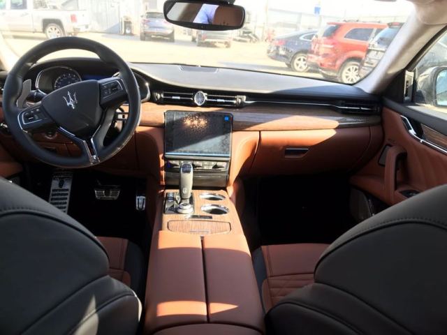 19款玛莎拉蒂总裁 内饰采用了高品质的实木和真皮材料。仪表台、中控台和车门的优美造型及流畅线条完美匹配,营造出奢华的驾驶氛围。引人注目的拉丝铝材边框映衬着8.4英寸玛莎拉蒂触控屏:用户可以通过它方便地操作各种信息和娱乐系统。后排运动型座椅均为皮革包覆,即使在极速冲刺的驾驶中,也能提供卓越的身体支撑。皮革运动型方向盘采用人体工程学设计,能充分实现准确操控,带来人车合一的体验。长换档面板采用轻质铝合金打造,触感丝滑,营造出人车一体的感受。