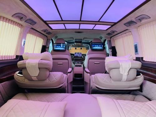 奔驰V250迈巴赫VS680后仓风格采用了车身同色,窗帘采用了迈巴赫手动黑丝窗帘,侧壁也采用了楠木贴皮。顶灯采用了最新奔驰迈巴赫顶棚,给人一种大气而不俗气的感觉,反而有一种舒服的感觉。