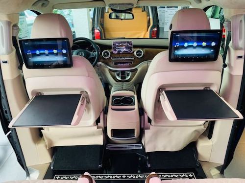 奔驰V250迈巴赫VS680通过后排向前看整个车是浑然一体的,这款迈巴赫真是当今定制商务车中的佼佼者,拥有奔驰迈巴赫享誉全球的品牌美誉度,它是豪华车的代表,而内部的定制风格既能满足商务接待又能兼顾家庭用途。用料十分凸显质感,个性化功能贴心实用,不愧为顶级豪华车的称号!