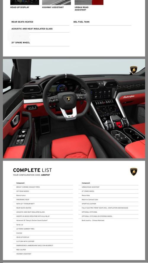 19款兰博基尼Urus加版配置: