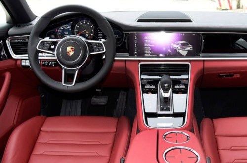 19款保时捷帕纳梅拉4S式仪表盘,具有液晶显示屏的行车电脑显示功能,超大液晶显示屏配有倒车雷达模拟图像。还有可以在每个弹簧中按需提供额外充气量的气动悬挂系统,可自动升起且角度可调的后扰流板,确保了主动空气动力学性能。另外,新一代PCM保时捷通讯管理系统在中控台上整合了尺寸更大的液晶屏幕。传统位于中控台的空调系统与警示灯等按钮,都转移至排档座区块。众多控制按钮以深色底板辅以细条镀铬的对称排列设计成为保时捷中控台造型的一大突破。